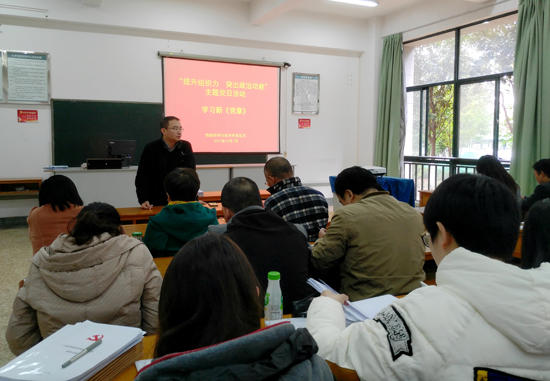 接下来,全体党员集中学习党的十九大修订《中国共产党章程》,党总支书记王宁从党章的发展史、十九大党章修改的主要内容、十九大修改党章的重大意义等方面作了专题辅导,详细解读了新修订《中国共产党章程》的基本精神和主要内容。要求全体党员要把学习贯彻党的十九大修订的《中国共产党章程》同学习党的十九大精神紧密结合起来,同学习习近平新时代中国特色社会主义思想紧密结合起来,深刻理解党章的核心精神,尊重党章,贯彻党章,维护党章,不断提高执行党章的能力,自觉把党章精神转化为教书育人的实际行动,发挥党员、党组织的政治功能,积极为推进教学、科研、人才培养作出贡献。