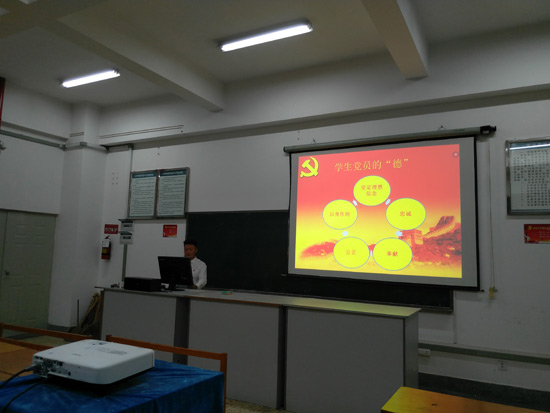 支部书记杨彦海以“洁洁良”事件的深刻教训为切入点,分析了这种不良行为产生的原因及危害,引导学生党员无论党龄长短,都不能忘记入党誓词,不能忘记初心,要坚决反对口是心非的“两面人”;与学生党员一起回顾了习近平总书记在庆祝建党95周年大会上提出的八个坚持“不忘初心、继续前进”;重申了党对高校师生在践行社会主义核心价值观方面的要求。用总书记对青年的嘱托“志存高远、德才并重、情理兼修、勇于开拓”和“人生的扣子从一开始就要扣好”与党员一起共勉。
